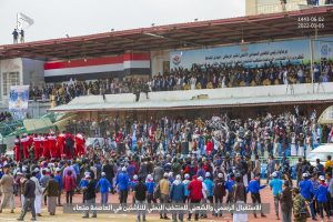 ووفق “سبأنت ” تخلل الحفل الجماهيري الحاشد، فقرة إنشادية وعرض عن مسيرة المنتخب الوطني للناشئين واستعداداته لبطولة غرب آسيا التي أحرزها عن جدارة واستحقاق.