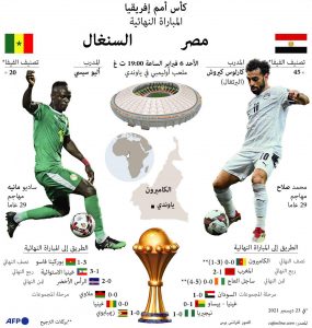 يتبارز مهاجما نادي ليفربول، النجمان المصري محمد صلاح والسنغالي ساديو مانيه، على لقب كأس أمم أفريقيا لكرة القدم اليوم الأحد في العاصمة الكاميرونية ياوندي بعد مسيرة مظفرة مع النادي الإنجليزي في السنوات الأخيرة.
