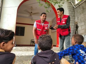 ويقول أسامة: “أتذكر المرة الأولى التي شاركت فيها في نشاط لزيادة الوعي مع جمعية الهلال الأحمر اليمني”. ويردف قائلاً: ” كنت أقدم النصائح للأطفال بشأن غسل اليدين، ولكن بطريقة مضحكة. أتذكر ضحكاتهم ومحاولاتي لتصحيح بعض أخطائي”.