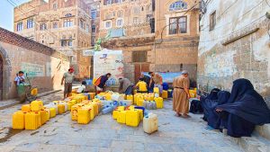 وقد أصبح أكثر من 20 مليون شخص بحاجة ماسة إلى إمدادات المياه النظيفة وخدمات الصرف الصحي والنظافة الصحية في اليمن. ووفر الهلال الأحمر اليمني، في إطار استجابته الطارئة، نقاط مياه في سبع محافظات (أمانة صنعاء، ومحافظة صنعاء، وذمار، وعمران، وحجة، والمحويت، وإب)، وهو يقدم المساعدة لما يقرب من 000 33 أسرة كل عام.