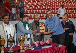 كرم وزير الشباب والرياضة محمد حسين مجد الدين المؤيدي ومعه وكيل الوزارة لقطاع الرياضة علي هضبان وأمين عام اللجنة الأولمبية محمد الأهجري ووكيل الوزارة المساعد لقطاع الرياضة كمال الشريف ورئيس الاتحاد العام لكرة السلة عبدالستار الهمداني أبطال بطولة كاس السوبر لأندية النخبة لكرة السلة التي نظمها الاتحاد العام للعبة خلال الفترة 5 – 11 سبتمبر الجاري بمشاركة أندية الميناء عدن وشعب حضرموت وأهلي صنعاء ووحدة صنعاء واحتضنت صالة النادي الأهلي منافساتها.