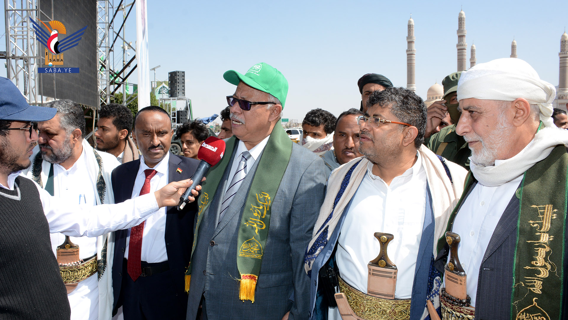 وقال” سعداء أن نكون اليوم إلى جانب المسؤولين والجهات كافة، لنشاهد اللمسات الأخيرة للفرحة العظمى التي يتوّق إليها ليس شعبنا اليمني فحسب بل والمسلمين في أنحاء العالم الذين يتابعون ماذا سيحدث في العاصمة صنعاء وكيف يحتفي أحفاد الأنصار برسولهم وينصرونه بعد وفاته، كما نصره آبائهم في فجر الدعوة”.