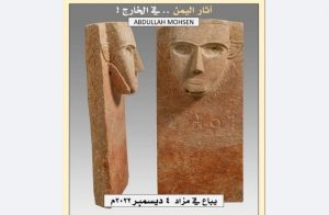 وقال محسن -في منشور بصفحته على فيسبوك- إن شاهد قبر مستطيل الشكل من الحجر الجيري الناعم من آثار اليمن سيباع في الرابع من ديسمبر القادم يباع في مزاد الآثار الجميلة للعصر قبل الكولومبي والفن الإسلامي الذي يقيمه معرض تراث بالميرا ” تدمر” في نيويورك.