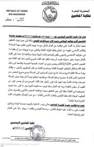 جمدت نقابة المحاميين اليمنيين عضوية اثنين من المحامين ، وأحالتهما للمجلس التأديب بسبب قيامهم باقتحام مقرها ومحاصرتها وإغلاقها في العاصمة صنعاء.