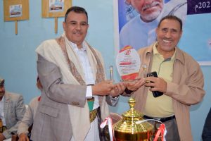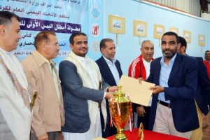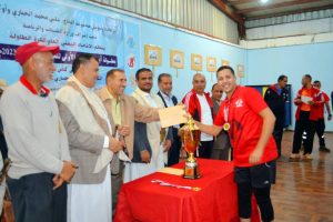 وعقب ذلك قام الاتحاد العام للعبة بإهداء رئيس مجلس إدارة مجموعة الحباري الصناعية والتجارية الشيخ يحيى علي الحباري درع الاتحاد تقديراً وعرفاناً بدوره في رعاية البطولة وإنجاحها وإخراجها بالصورة المميزة.