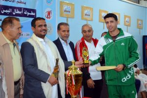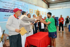 كرم وكيل وزارة الشباب والرياضة لقطاع الرياضة علي هضبان وأمين عام اللجنة الأولمبية الوطنية محمد الاهجري ورئيس الاتحاد العام لكرة الطاولة الدكتور عصام السنيني أبطال بطولة أبطال اليمن الأولى لكرة الطاولة للفردي التي نظمها على مدى خمسة أيام الاتحاد العام للعبة تحت إشراف وزارة الشباب والرياضة وبتمويل ورعاية مجموعة الحاج علي محمد الحباري وأولاده الصناعية والتجارية وعلى كأس المرحوم الحاج علي محمد الحباري.