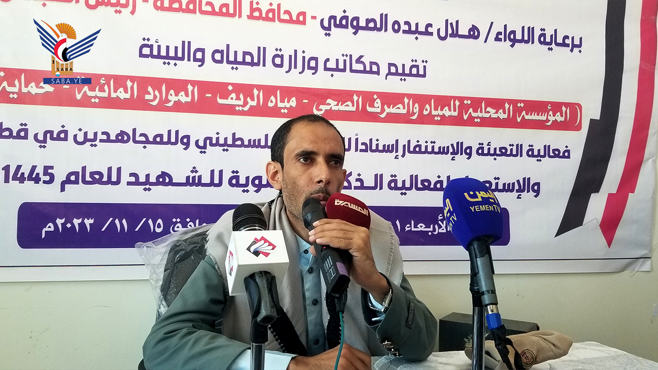 وفي الفعالية، التي حضرها مديرو المؤسسة المحلية للمياه والصرف الصحي، المهندس أمين المغلس وهيئتي حماية البيئة علي الضلعي والموارد المائية، إسماعيل المهدي، أشار المدير الفني بالمؤسسة المحلية للمياه المهندس محمد عبدالودود إلى اهمية الانتصار للشعب الفلسطيني ومقاومته الباسلة.