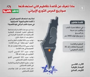 قاعدة نفاتيم “الجوية” الإسرائيلية تبعد 1100 كلم عن الأراضي الإيرانية، وتقع على بعد 15 كم إلى جنوب شرق مدينة بئر السبع، بالقرب من “موشاف نيفاتيم” في صحراء النقب.