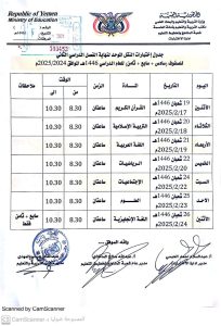 أعلن مكتب التربية بأمانة العاصمة صنعاء، موعد بدء الاختبارات المركزية الموحدة الخاصة بطلاب مدارس الأمانة للفصل الدراسي الثاني للعام ١٤٤٦ﮪ ـ ٢٠٢٥/٢٠٢٤م، وذلك للصفوف (6 – 7 – 8).