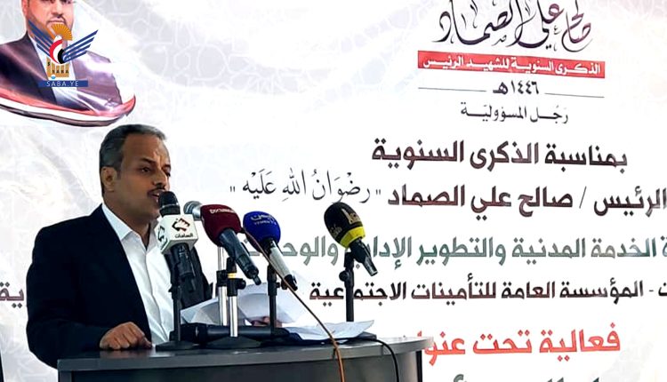ولفت في الفعالية، بحضور عميد معهد العلوم الإدارية الدكتور محمد القطابري ونائبي رئيسي هيئة التأمينات والمعاشات عبدالسلام الكحلاني ومؤسسة التأمينات الاجتماعية هيثم باصيد، إلى أن الرئيس الشهيد الصماد رمز وطني وعنوان للصمود والتضحية ونموذجا إيمانيا في ولائه وحبه وإخلاصه لوطنه وأمته وسعيه الدؤوب لما فيه مرضاة الله وخدمة شعبه ومناصرة قضايا أمته.