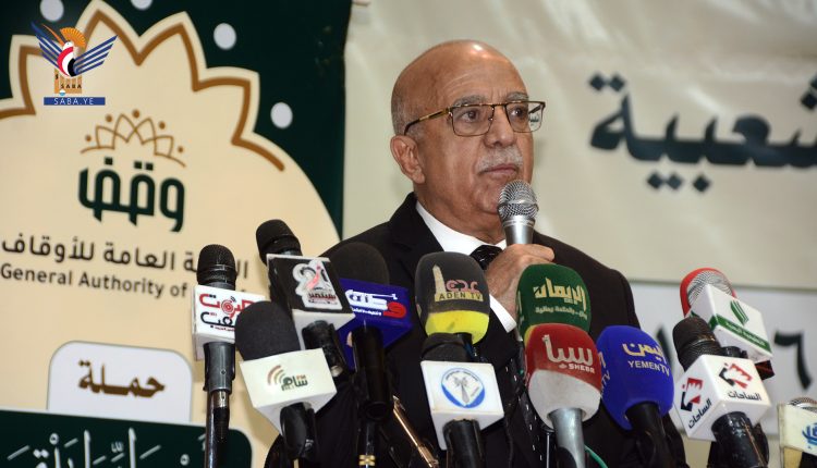 ودعا رئيس هيئة الأوقاف كافة أبناء اليمن والجهات الرسمية وغير الرسمية ورجال المال والأعمال إلى الإسهام الفاعل في إنجاح الحملة التي تعتبر من أشرف الحملات.