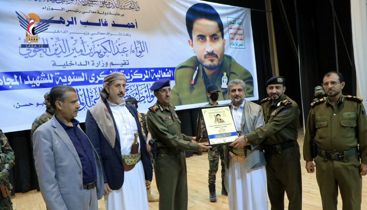 وفي ختام الفعالية، التي حضرها عدد من مستشاري وزير الداخلية ورؤساء المصالح ومديري العموم وجمع من منتسبي الوزارة، تم تكريم أسرة الشهيد بدرع الوفاء، قدمه نائب رئيس الوزراء لشؤون الدفاع والأمن، الفريق الركن جلال الرويشان، ونائب وزير الداخلية، اللواء عبدالمجيد المرتضى، للدكتور محمد المداني، شقيق الشهيد اللواء طه المداني.