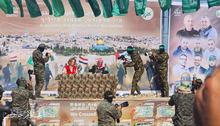 وأضاف، وضعت حماس لافتة تذكرهم بأحداث 7 أكتوبر تقول: “لقد مررنا مثل خيط من أشعة الشمس”، مع صور الكيبوتسات الموجودة في الغلاف ، والتي تضررت في الهجوم حين اقتحمها عناصر حماس.