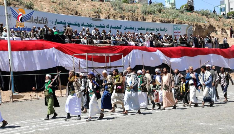 وخلال العرض الذي حضره رئيس محكمة الاستئناف بالمحافظة القاضي ساري العجيلي، أوضح مسؤول التعبئة العامة عبدالفتاح غلاب، أن قوات التعبئة على أهبة الاستعداد والجاهزية للمساهمة في الدفاع عن الوطن ومواجهة أي تصعيد أمريكي بريطاني إسرائيلي على اليمن.