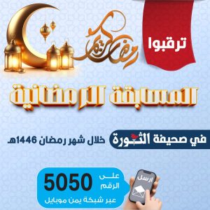 جرياً على العادة، تنظم مؤسسة الثورة للصحافة والطباعة والنشر، مسابقة الثورة السنوية للعام 1446هـ، والتي ستقام على مدى أيام شهر رمضان المبارك.