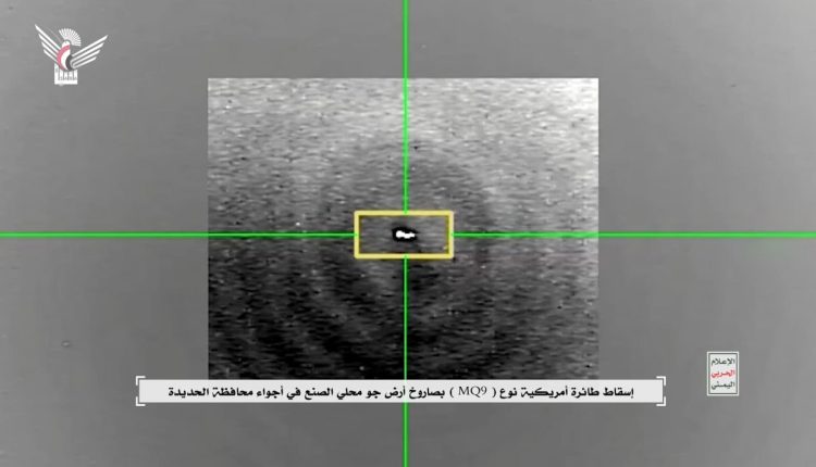 وكانت القوات المسلحة قد أعلنت في وقت سابق عن تمكن الدفاعات الجوية من إسقاط طائرة أمريكية معادية نوع MQ_9 أثناء انتهاكها للأجواء اليمنية وقيامها بمهام عدائية.. مشيرة إلى أن هذه الطائرة تعد الـ 15 التي يتم إسقاطها خلال معركة “الفتح الموعود والجهاد المقدس”.