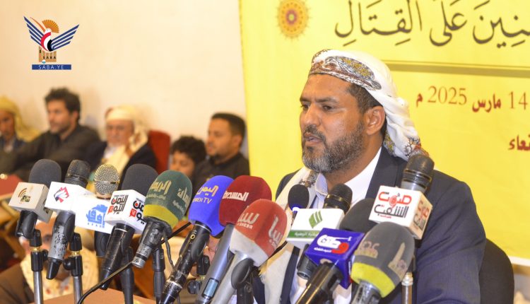 واعتبر بيان الفعالية، الجهاد في سبيل الله صمام عزة الأمة وكرامتها واستقلالها وحريتها وهو فريضة دينية وواجب شرعي ومبدأ إسلامي وضرورة واقعية، محذرًا من خطورة المرجفين والمثبطين الذين يمثلون الطابور الخامس للعدو.