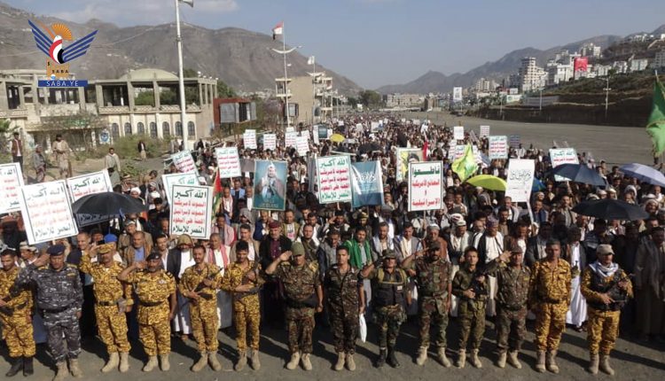 إب:104 مسيرات تحت شعار” ثابتون مع غزة .. ونواجه التصعيد الأمريكي بالتصعيد”