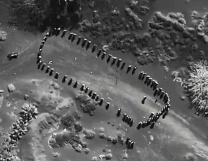 ويُظهر الفيديو، الذي تم تصويره من الجو، عشرات الأشخاص وهم يتجمعون في تشكيل شبه دائري، قبل أن يتعرضوا لغارة أمريكية على إثرها ارتقوا شهداء .