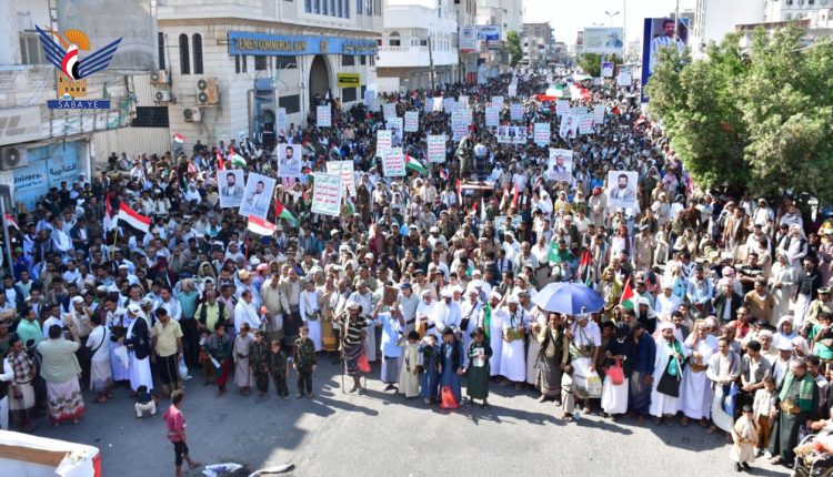 طوفان بشري في 135 ساحة بالحديدة “دعماً لغزة وتنديداً بجرائم الأعداء”