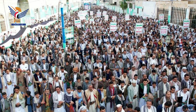 وأكد أبناء حجة في المسيرات التي أقيمت في مركز المحافظة والمديريات، الاستمرار في الثبات والصمود في مواجهة العدوان الأمريكي المساند للعدو الصهيوني الذي يرتكب جرائم حرب بحق الأشقاء في غزة.