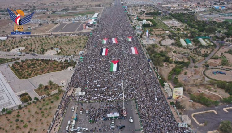 حشود مليونية بصنعاء تأكيدا على الثبات مع غزة ومواجهة التصعيد الأمريكي الإسرائيلي