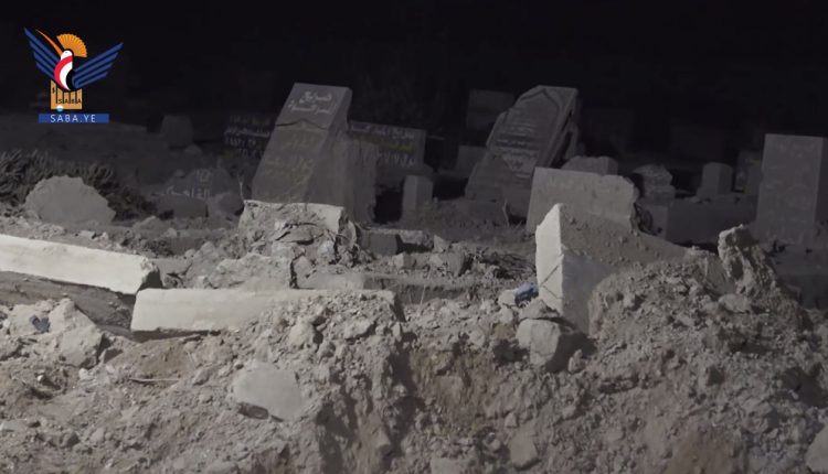 وقال البيان “تتابع هيئة الأوقاف ما يمارسه العدو الأمريكي من جرائم نكراء تستهدف الشعب اليمني ومقدراته وآخرها جريمة استهداف مقبرة ماجل الدمة بالعاصمة صنعاء، ما أدى إلى جرح حارسها والإضرار بــ240 قبراً منها تسعة قبور تضررت بشكل كلي و231 قبراً تضرر بشكل جزئي”.