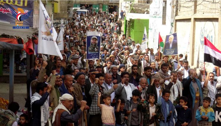 وأكد المشاركون في المسيرات والوقفات في الساحات الرئيسية والقرى والعزل بمديريات الحيمتين الخارجية والداخلية ومناخة وصعفان، أن خروجهم اليوم، جاء مساندة للشعب الفلسطيني، ورداً على جرائم العدوان الأمريكي البريطاني الصهيوني على الوطن.