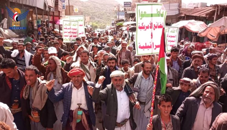 مسيرات ووقفات حاشدة بمحافظة صنعاء نصرةً لغزة واحتفالا بهزيمة العدو الأمريكي