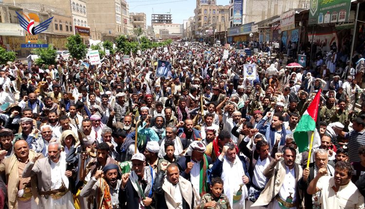 ورفع المشاركون في المسيرات الذي تقدمها بمديرية دمت القائم بأعمال المحافظ عبد اللطيف الشغدري ومسؤول التعبئة أحمد المراني، العلمين اليمن وفلسطين، ورددوا الهتافات المستنكرة لجرائم الإبادة الجماعية التي يرتكبها العدو الأمريكي الصهيوني في غزة واليمن.