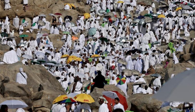 ومن مشعر منى حيث قضوا يوم التروية، توافد ضيوف الرحمن على صعيد عرفات، على بعد نحو 15 كيلومترا شرق منى، لتأدية ركن الحج الأعظم، حيث أدوا في عرفات صلاتي الظهر والعصر جمعا وقصرا بأذان واحد وإقامتين في مسجد نمرة؛ اقتداء بالرسول الأعظم محمد صلى الله عليه وسلم.