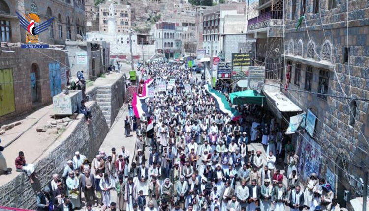 المحويت: 74 مسيرة تحت شعار “مستمرون في نصرة غزة والمقدسات مهما كانت التحديات”