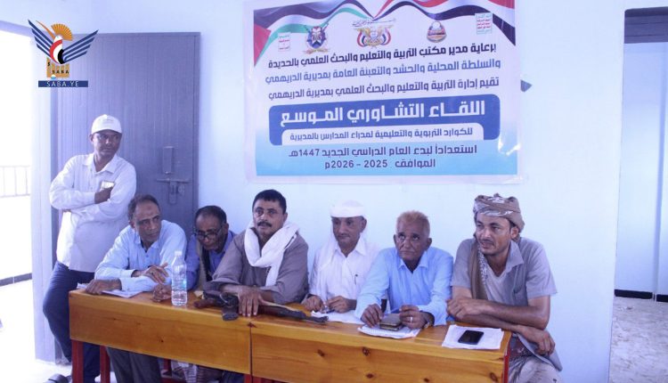 الوحدة نيوز/ أُقيم بمديرية الدريهمي في محافظة الحديدة، اليوم، لقاء تشاوري موسع للكوادر التربوية والتعليمية ومدراء المدارس، ضمن الاستعدادات للعام الدراسي 1447هـ.