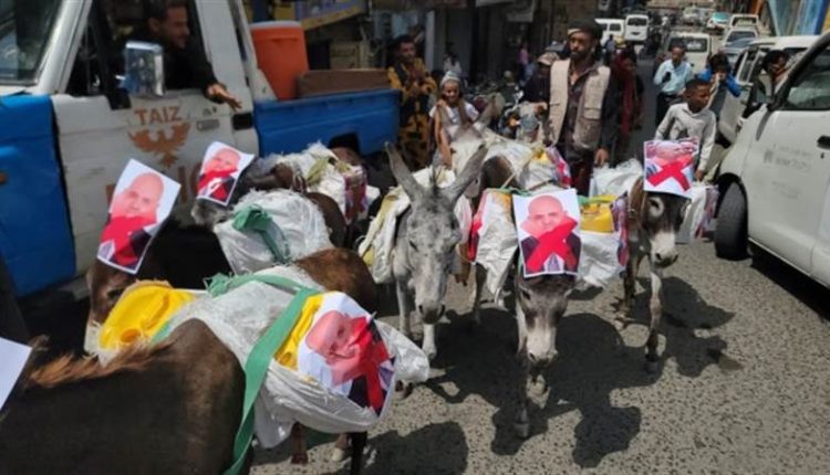 اختار ت مظاهرة شعبية في مدينة تعز الخاضعة لما يسمى بـ”الشرعية” أسلوب التلميح والسخرية بتواجد بعض الحمير احتجاجاً على أزمة المياه الخانقة التي تعيشها المدينة منذ أسابيع، وارتفاع أسعار صهاريج المياه (الوايتات) في ظل الأوضاع الاقتصادية الصعبة التي يعيشها المواطنون.