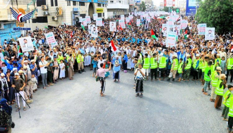 مسيرات جماهيرية في الحديدة تحت شعار “نصرة لغزة .. مسيراتنا مستمرة، وعملياتنا متصاعدة”