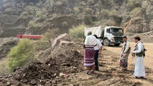 قحيم يوجه بسرعة إزالة أضرار الانهيارات الصخرية في نقيل بني سلامة (صــــــور)