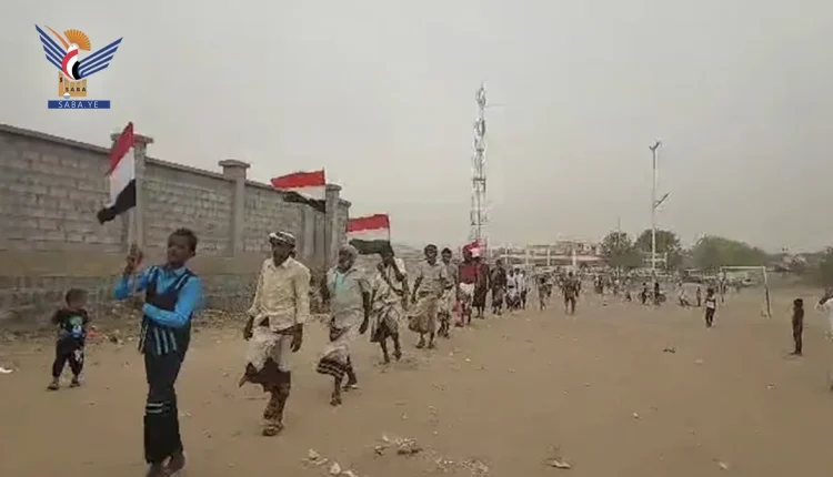 ورفع المشاركون في المسير أعلام اليمن وفلسطين، مرددين الشعارات المناهضة للإجرام الإسرائيلي، والرافضة للتطبيع، والمؤكدة على وحدة جبهة محور المقاومة في مواجهة مشاريع الاحتلال والهيمنة.