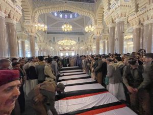 والإثنين الماضي، شيّعت جثامين شهداء حكومة التغيير والبناء الذين ارتقت أرواحهم جراء العدوان الإسرائيلي الغادر والجبان الذي استهدفهم يوم الخميس الماضي في العاصمة صنعاء.