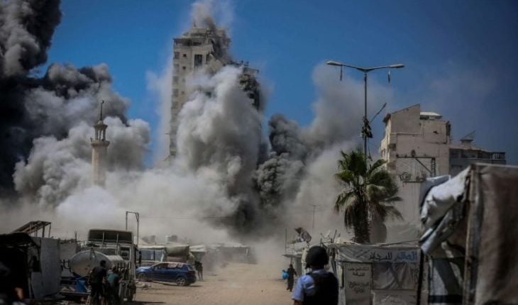 دمر الطيران الحربي الإسرائيلي، الأحد، “عمارة الرؤية” غربي مدينة غزة، في إطار تكثيف استهدافه للعمارات والأبنية السكنية تمهيدًا لاحتلال المدينة.