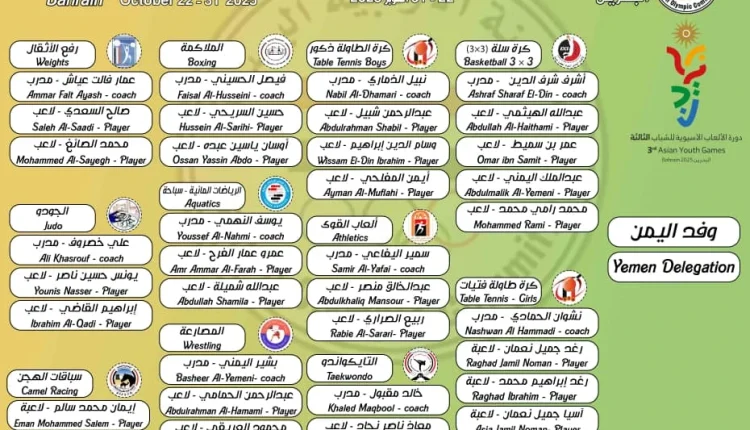 ويشارك اليمن في الدورة بلاعبين ولاعبات أغلبهم من مراكز الواعدين الذين تعدهم اللجنة الأولمبية بالتعاون مع الاتحادات الرياضية التي رشحت لاعبيها ومدربيها للمشاركة في الدورة الآسيوية للشباب.