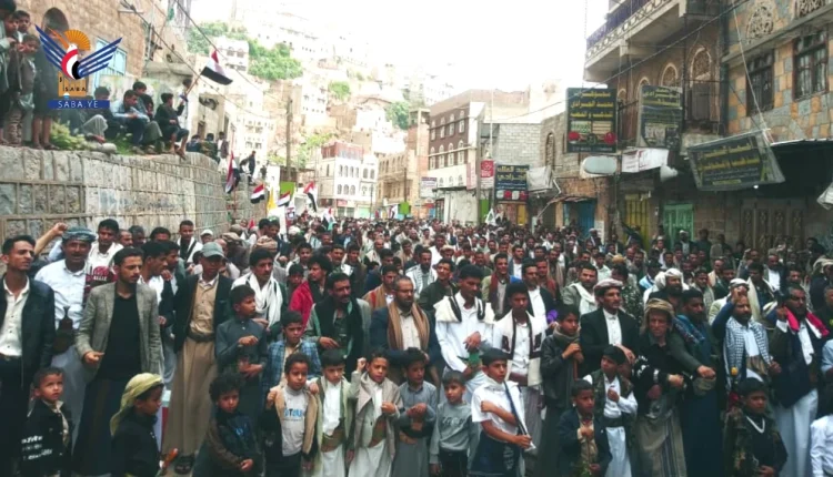 المحويت: 94 مسيرة ووقفة رفضا للخذلان والصمت العربي تجاه جرائم الإبادة والتجويع بغزة