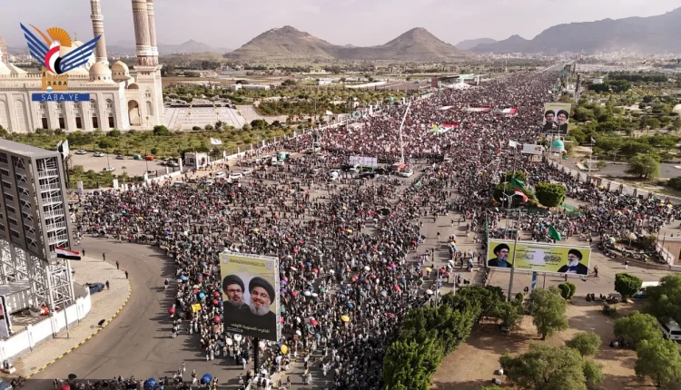 حشود مليونية بالعاصمة صنعاء في مسيرة “مع غزة.. يمن الإيمان في جهاد وثبات واستنفار”