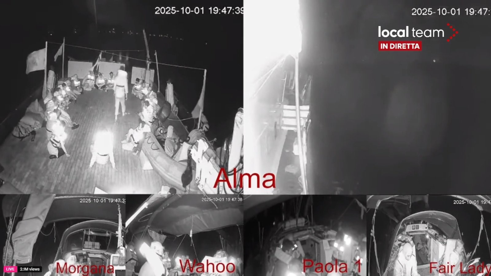 ما أوضح البيان، أنّ الكاميرات على متن السفن خارج الخدمة، وأن الجنود الإسرائيليين صعدوا فعلياً إلى بعض السفن، بينما أمرت بحرية الاحتلال الأسطول بتغيير مساره نحو ميناء “أشدود” بذريعة تفتيش المساعدات الإنسانية التي تنقلها السفن.