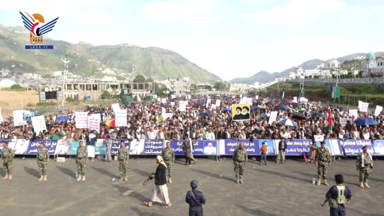 وأكد المشاركون في المسيرة الجماهيرية بساحة الرسول الأعظم بمدينة إب، بحضور عدد من أعضاء مجلسي النواب والشورى، ووكلاء المحافظة ومسؤول التعبئة، أن الإدارة الأمريكية ورئيسها الإرهابي ترامب هم من يتحملون المسؤولية الكاملة عن المؤامرات والجرائم المروعة التي ترتكب بحق غزة وأهلها.