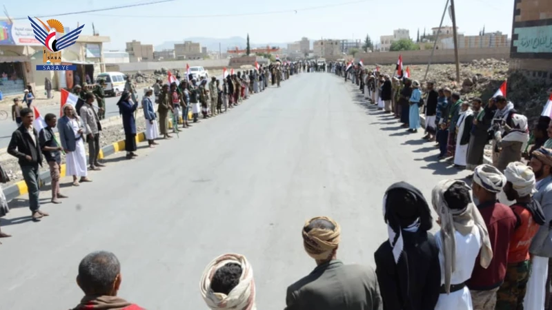 وعقب المسير الذي جاب عددًا من شوارع المديرية، نُظمت وقفة مسلحة، بارك من خلالها المشاركون الانتصار الكبير الذي حققته المقاومة الفلسطينية في معركة “طوفان الأقصى” المباركة، مؤكدين تضامنهم الكامل مع الشعب الفلسطيني ومقاومته الباسلة.