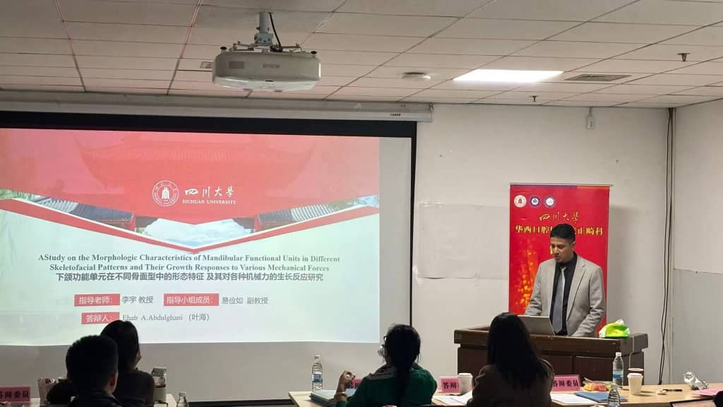 نال الباحث اليمني إيهاب عبدالجليل أحمد عبدالغني، اليوم، درجة الدكتوراه بامتياز من كلية طب الأسنان في جامعة سيتشوان بجمهورية الصين.