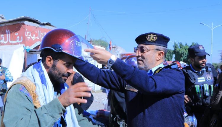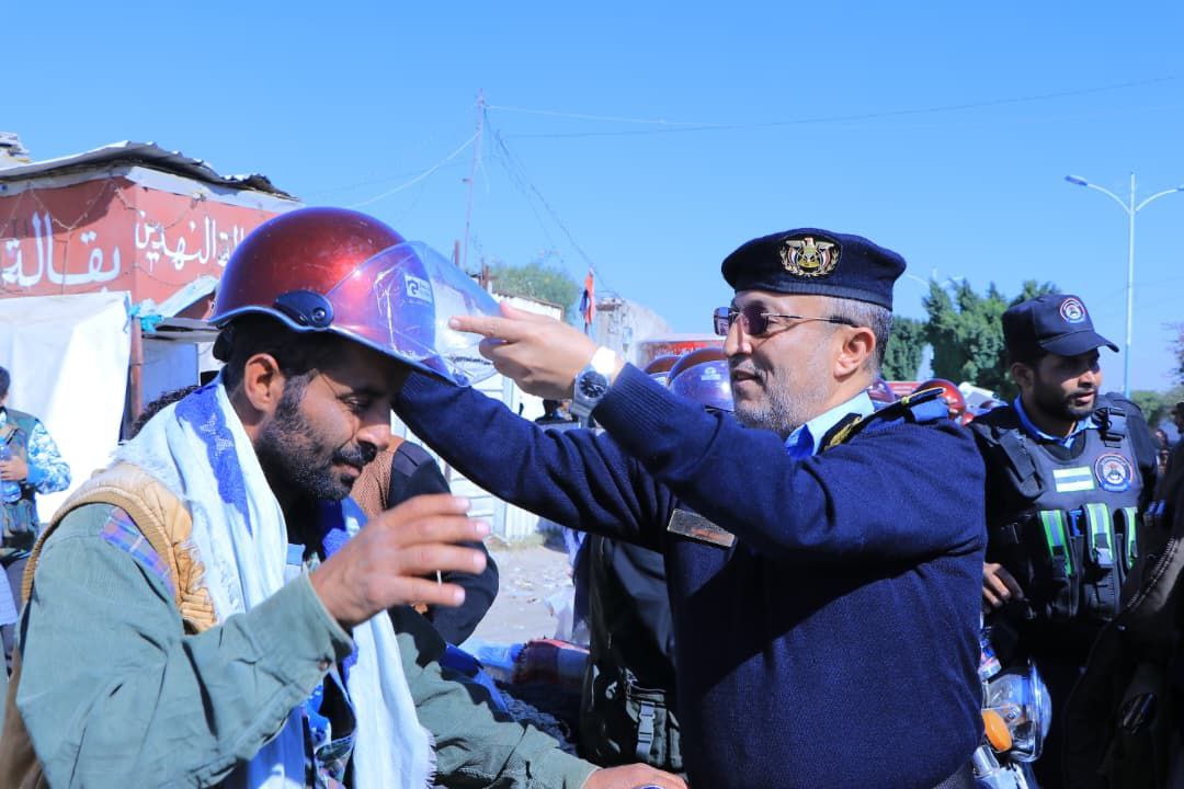 شرطة المرور توزع 500 خوذة لسائقي الدراجات بصنعاء