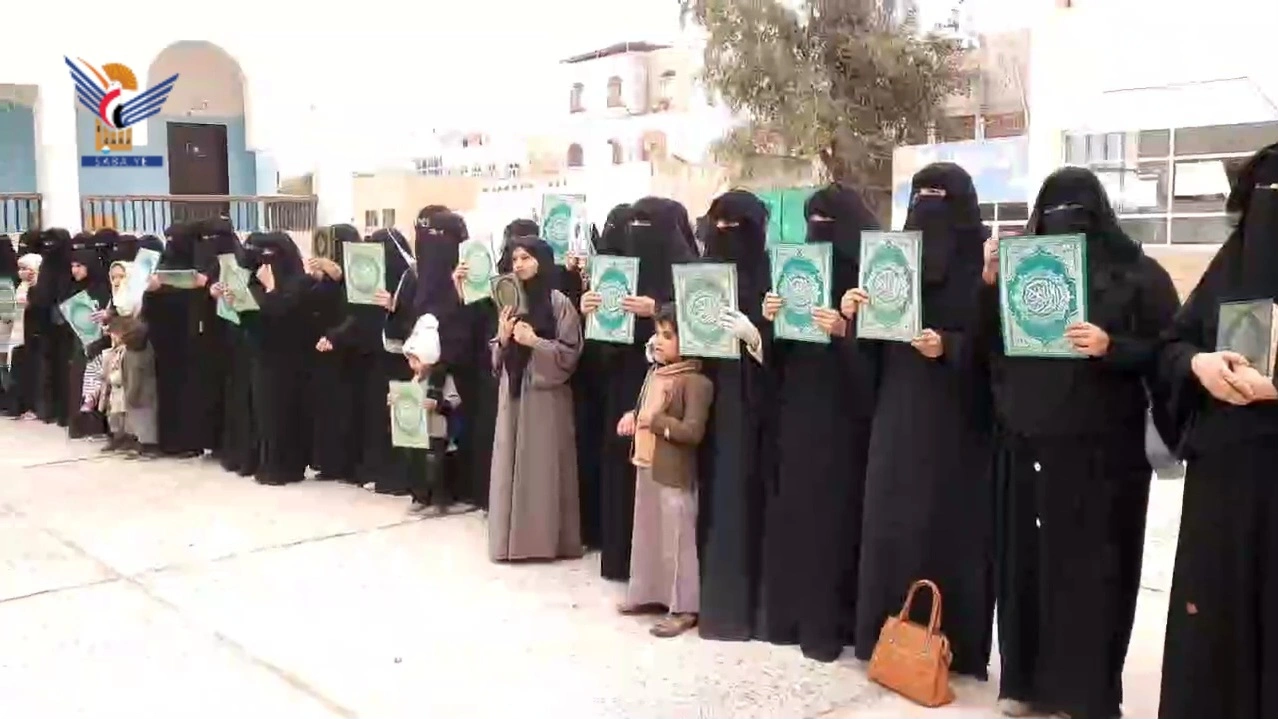 ورددت المشاركات هتافاتٍ تؤكد التمسك بالقرآن الكريم منهجًا وهداية، وتدين جرائم الإساءة المتكررة لكتاب الله، محذّرات من عواقب الاستهانة بالمقدسات الإسلامية.