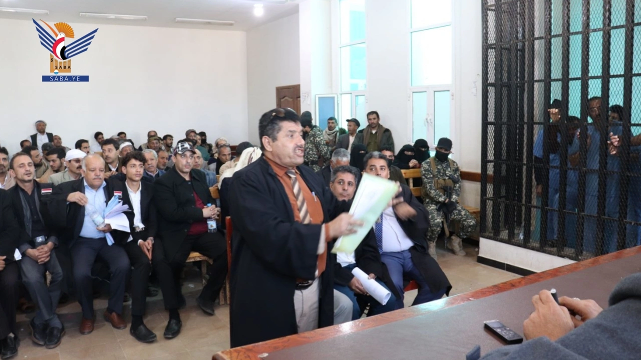 وخلال الجلسة التي عُقدت برئاسة رئيس الشعبة القاضي عبدالله النجار، وعضوية القاضيين حسين العزي، ومحمد مفلح، وبحضور عضو النيابة العامة القاضي علي الجولحي، قدمت هيئات الدفاع عرائض استئناف ومرافعات شفهية عن المتهمين، الذين قضى الحكم الابتدائي بمعاقبة (17) بالإعدام، واثنين بالسجن عشر سنوات، وبراءة اثنين آخرين.
