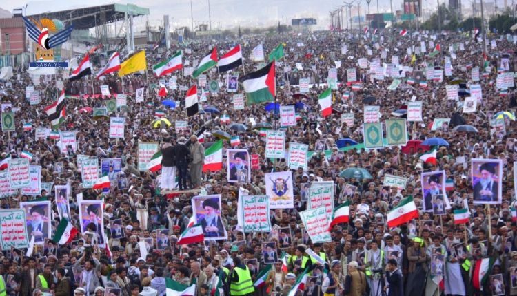 وقد شهدت العاصمة صنعاء مطلع الأسبوع الجاري، تظاهرة حاشدة للتضامن مع إيران جراء العدوان الامريكي والإسرائيلي.